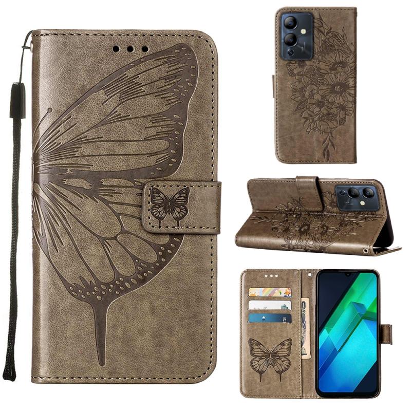 For Infinix Note 12i X6819 Embossed Butterfly Flip Leather Phone Case(Grey)