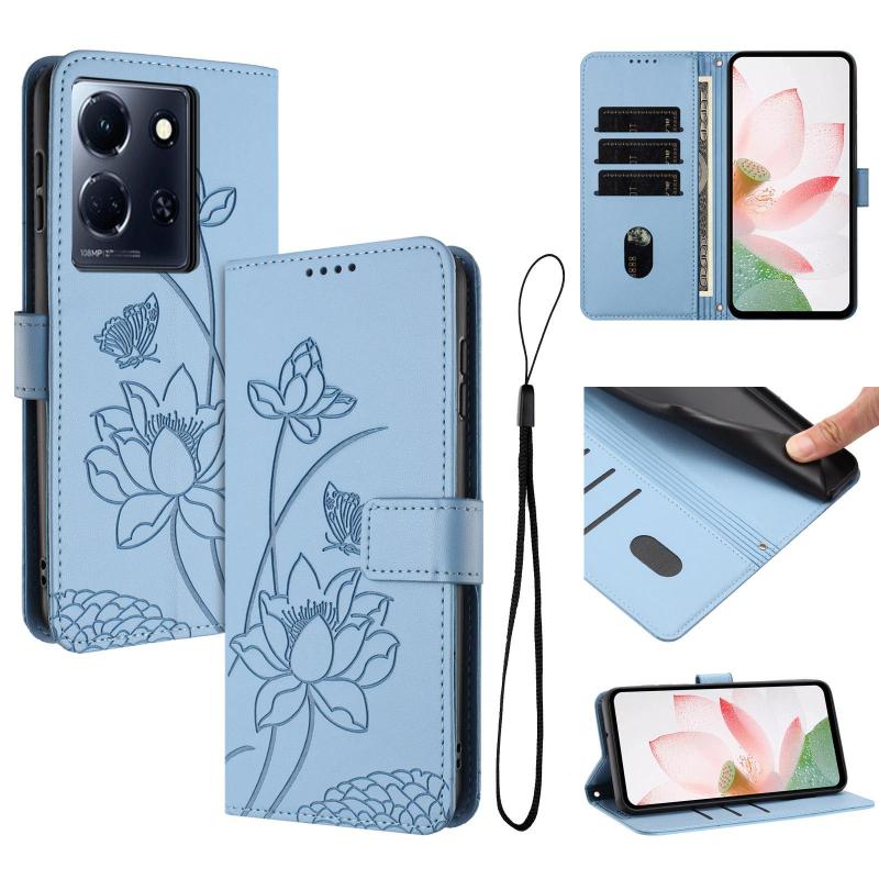 For Infinix Note 30 4G / 5G Lotus Embossed Leather Phone Case with Lanyard(Blue)