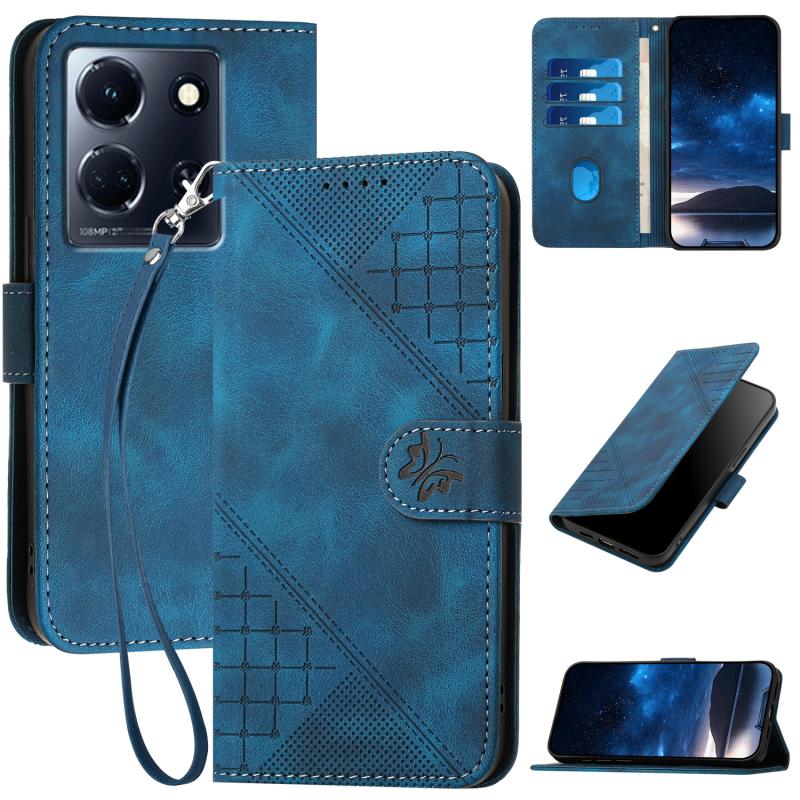 For Infinix Note 30 5G Grid Butterfly Embossed Pattern Leather Phone Case with Lanyard(Dark Blue)