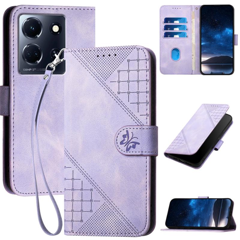 For Infinix Note 30 5G Grid Butterfly Embossed Pattern Leather Phone Case with Lanyard(Light Purple)