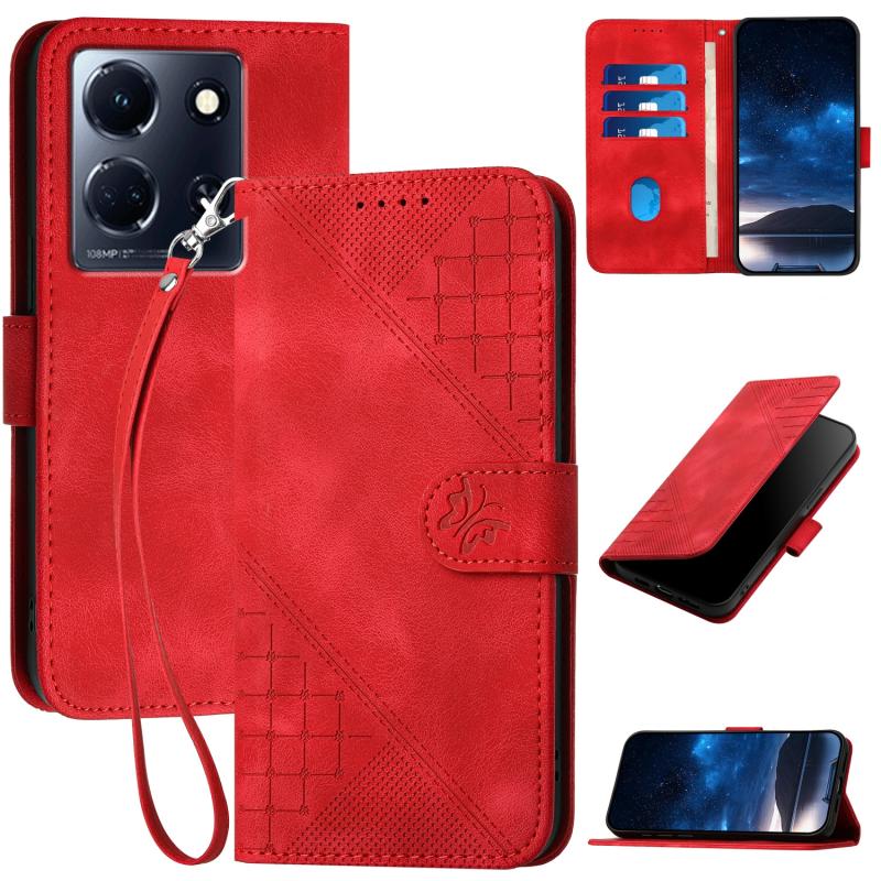 For Infinix Note 30 5G Grid Butterfly Embossed Pattern Leather Phone Case with Lanyard(Red)