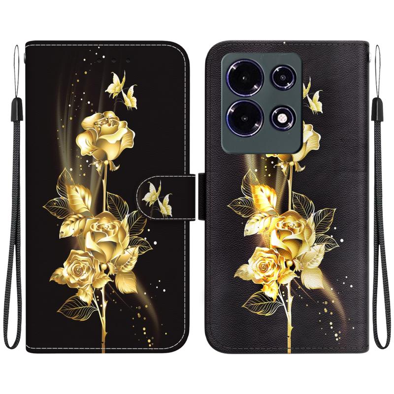 For Infinix Note 30 Crystal Texture Colored Drawing Leather Phone Case(Gold Butterfly Rose)