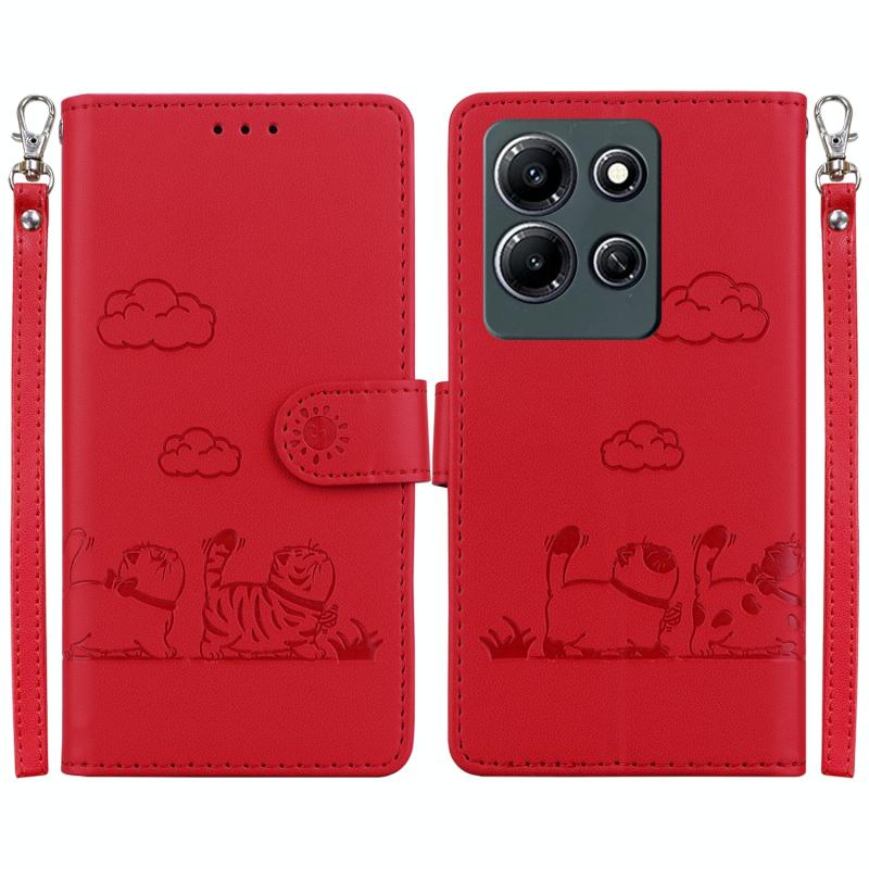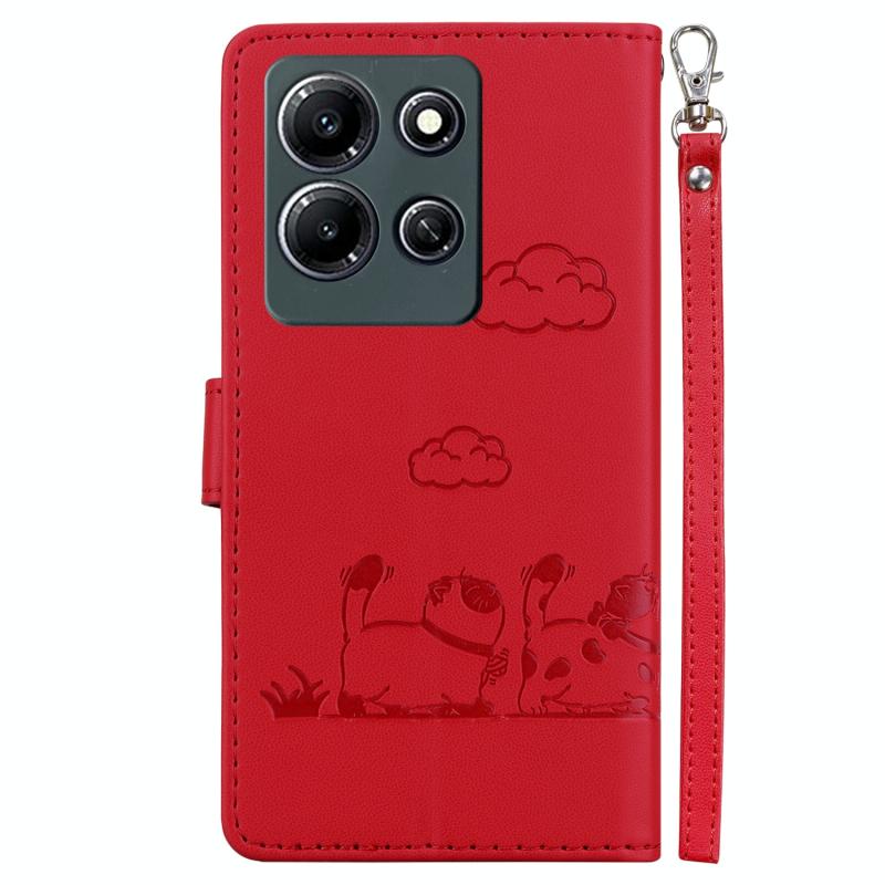 For Infinix Note 30i Cute Cats RFID Leather Phone Case(Red)