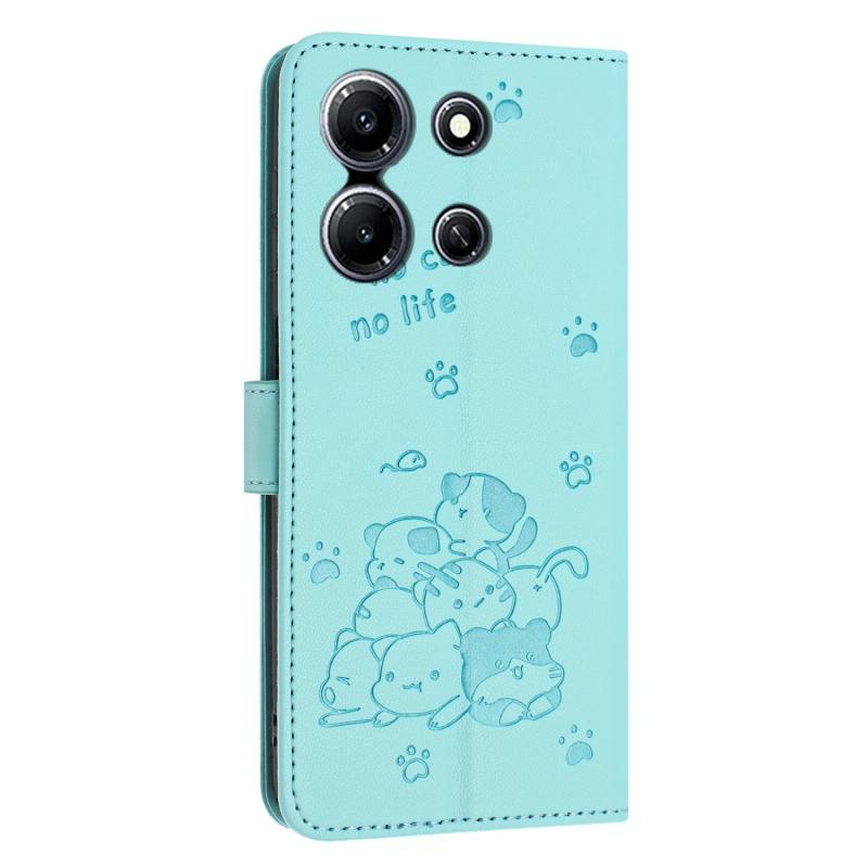 For Infinix Note 30i Embossed Kitten Phone Leather Case with Lanyard(Mint Green)