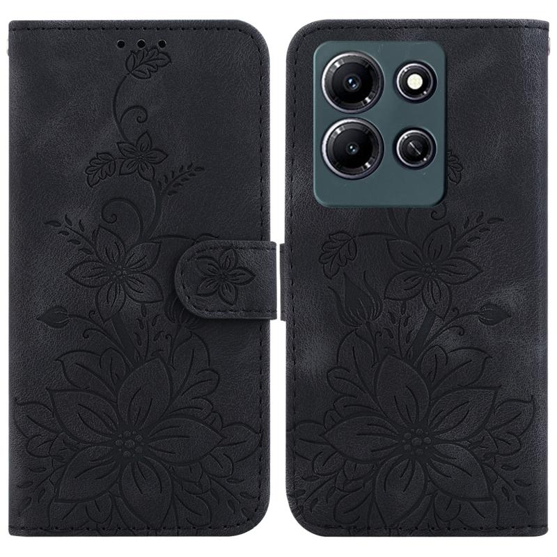 For Infinix Note 30i Lily Embossed Leather Phone Case(Black)