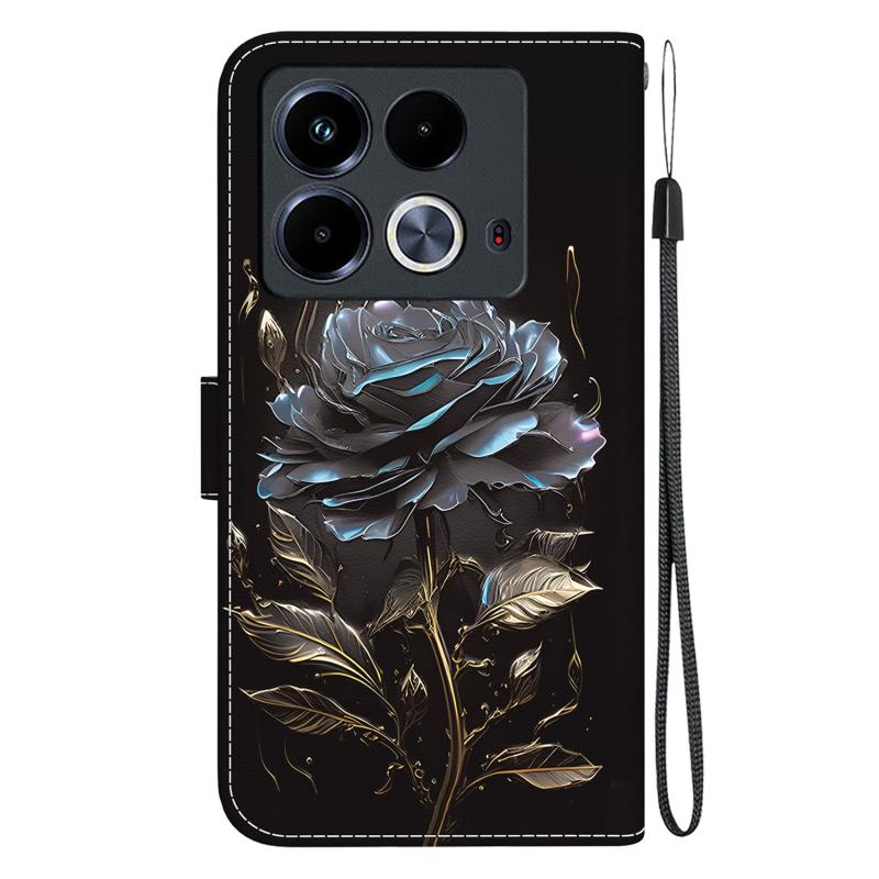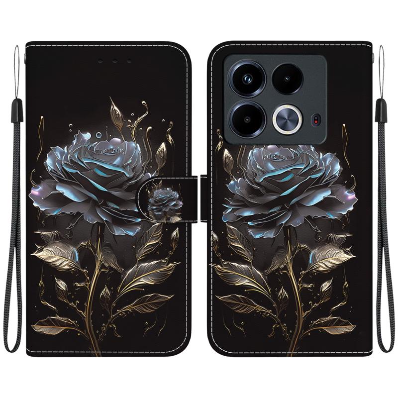 For Infinix Note 40 4G Crystal Texture Colored Drawing Leather Phone Case(Black Rose)