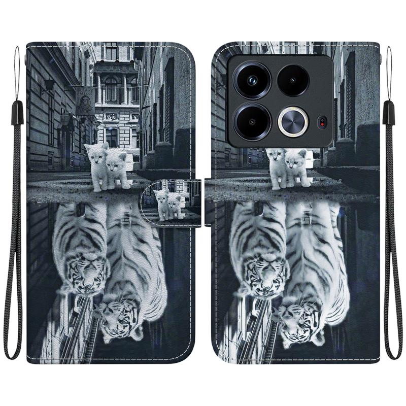 For Infinix Note 40 4G Crystal Texture Colored Drawing Leather Phone Case(Cat Tiger Reflection)