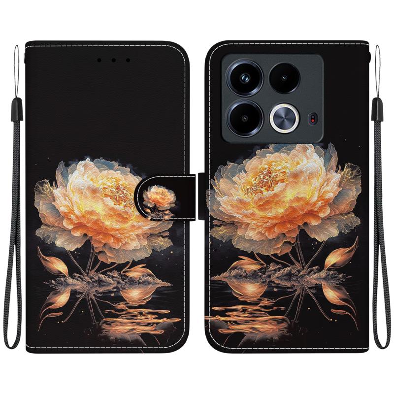 For Infinix Note 40 4G Crystal Texture Colored Drawing Leather Phone Case(Gold Peony)