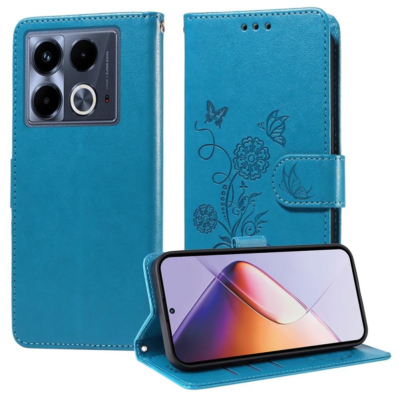 For Infinix Note 40 4G Embossed Butterfly Flowers Leather Phone Case(Blue)