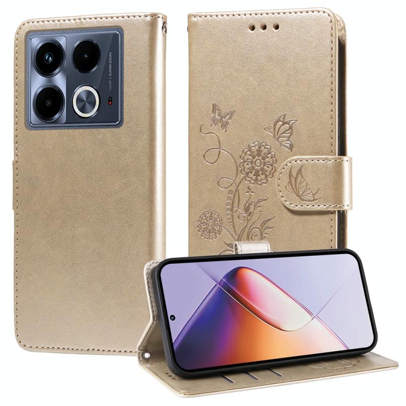 For Infinix Note 40 4G Embossed Butterfly Flowers Leather Phone Case(Gold)