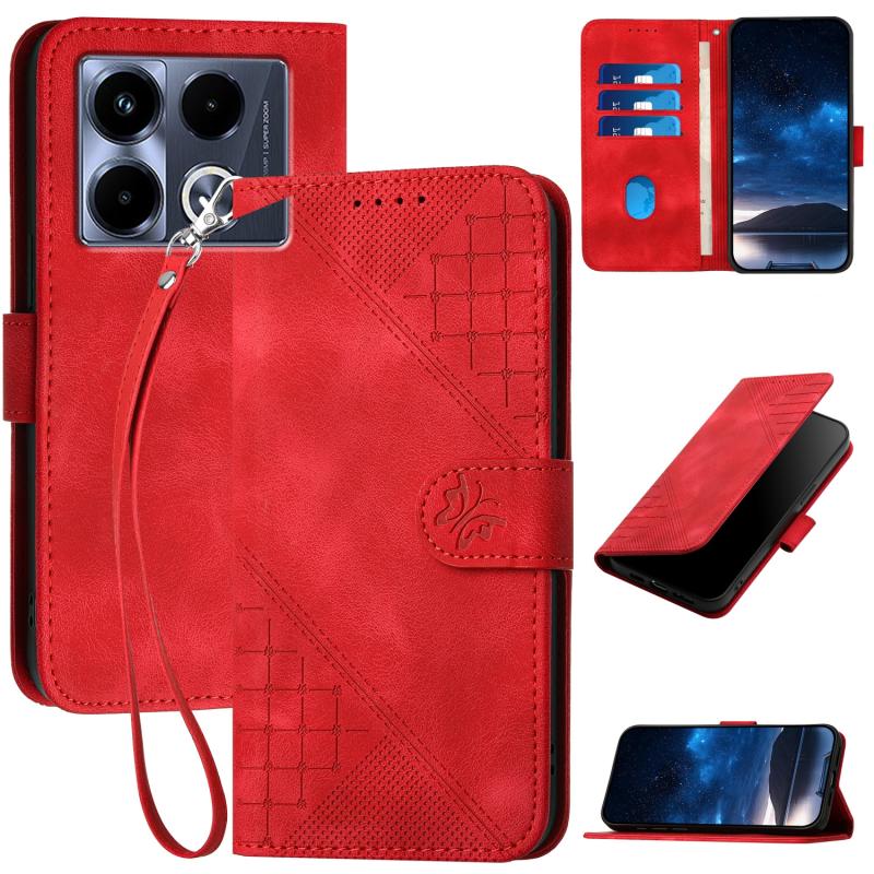 For Infinix Note 40 4G Grid Butterfly Embossed Pattern Leather Phone Case with Lanyard(Red)