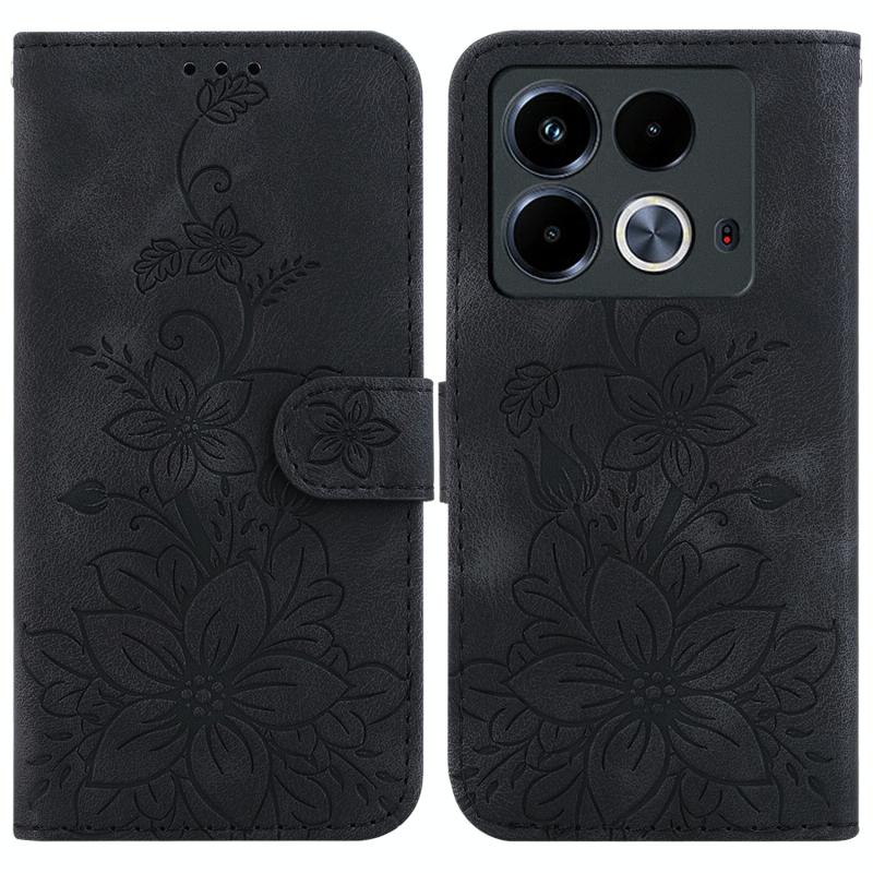 For Infinix Note 40 4G Lily Embossed Leather Phone Case(Black)