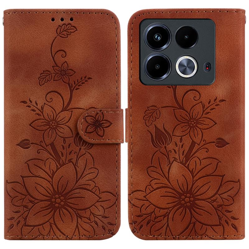 For Infinix Note 40 4G Lily Embossed Leather Phone Case(Brown)