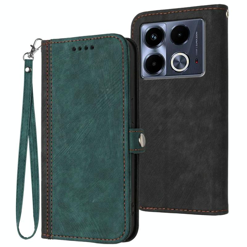 For Infinix Note 40 4G Side Buckle Double Fold Hand Strap Leather Phone Case(Dark Green)