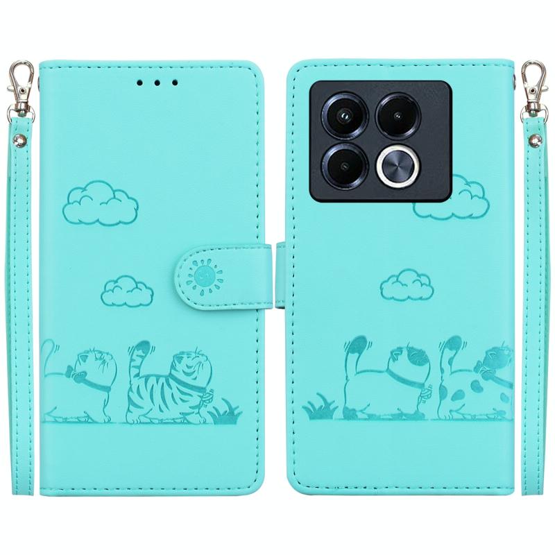 For Infinix Note 40 5G Cute Cats RFID Leather Phone Case(Green)