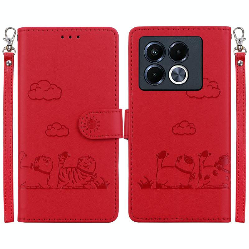 For Infinix Note 40 5G Cute Cats RFID Leather Phone Case(Red)