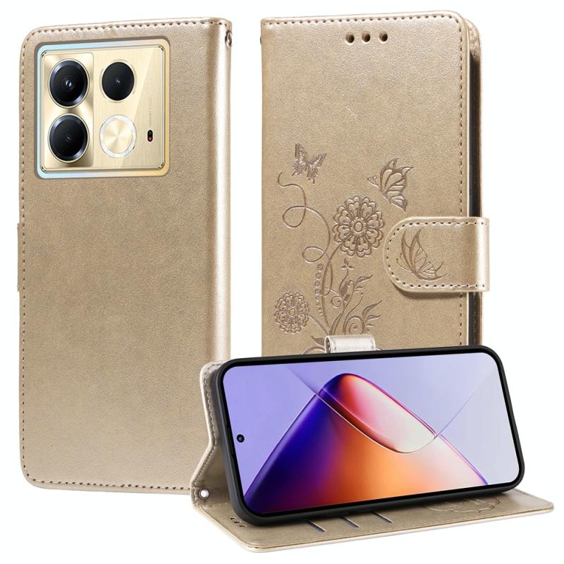 For Infinix Note 40 5G Embossed Butterfly Flowers Leather Phone Case(Gold)