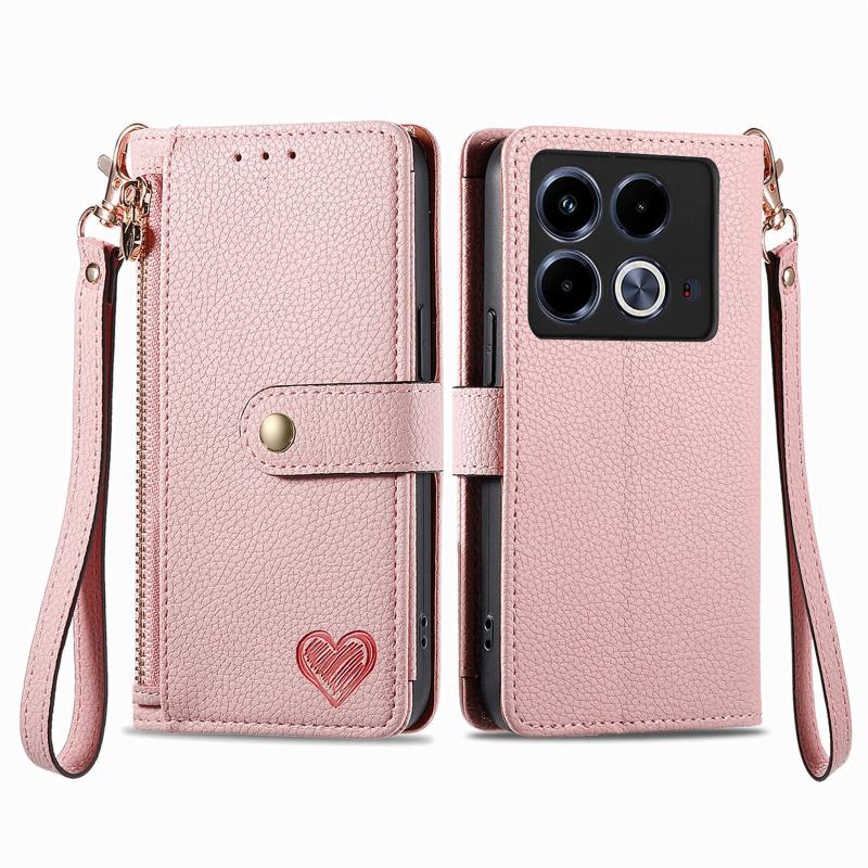 For Infinix Note 40 Love Zipper Lanyard Leather Phone Case(Pink)