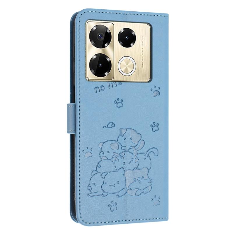 For Infinix Note 40 Pro 4G / 5G Embossed Kitten Phone Leather Case with Lanyard(Blue)