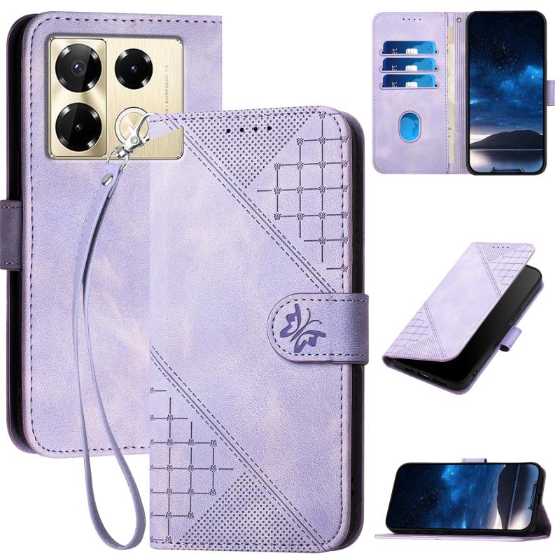 For Infinix Note 40 Pro 4G / 5G Grid Butterfly Embossed Pattern Leather Phone Case with Lanyard(Light Purple)
