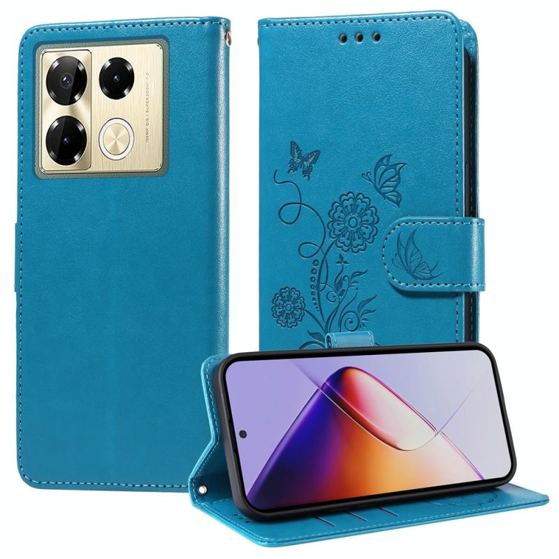 For Infinix Note 40 Pro 4G / 5G / Note 40 Pro+ Embossed Butterfly Flowers Leather Phone Case(Blue)