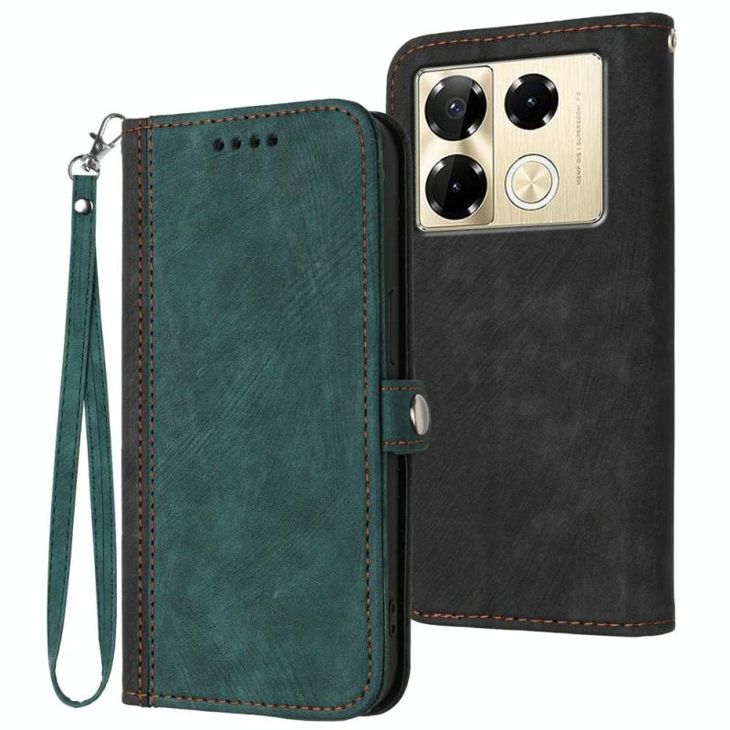 For Infinix Note 40 Pro 4G / 5G Side Buckle Double Fold Hand Strap Leather Phone Case(Dark Green)