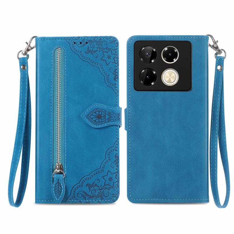 For Infinix Note 40 Pro 4G Embossed Flower Zipper Leather Phone Case(Blue)