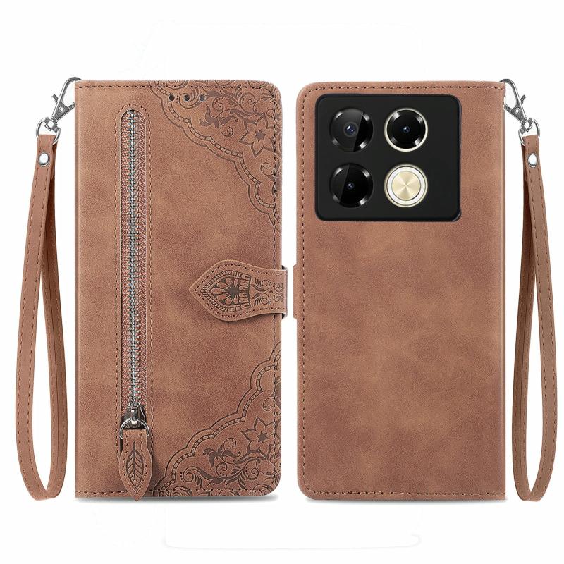 For Infinix Note 40 Pro 4G Embossed Flower Zipper Leather Phone Case(Brown)