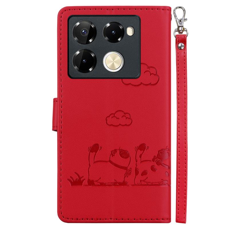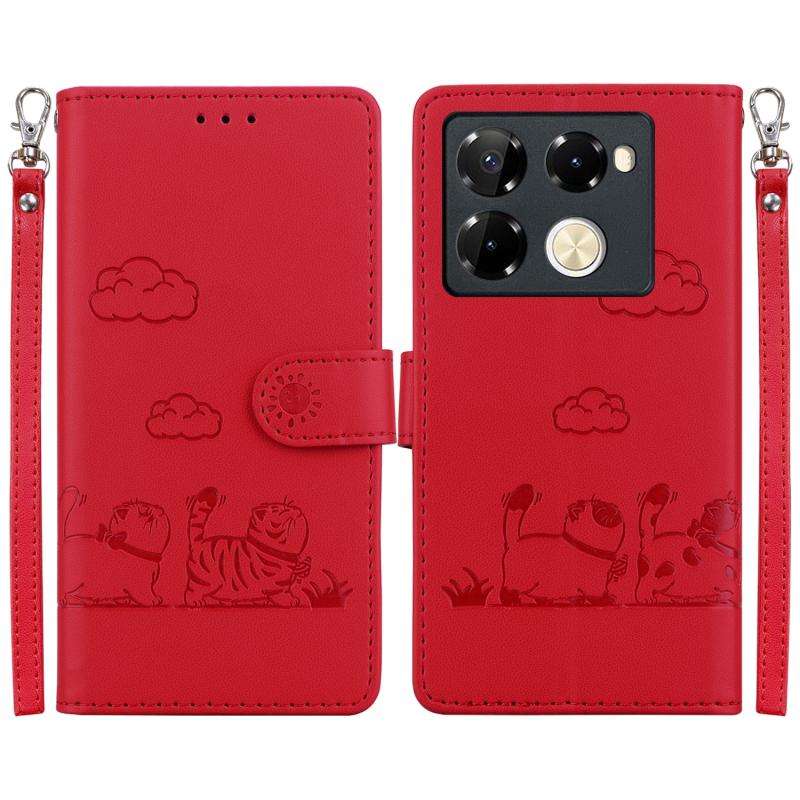 For Infinix Note 40 Pro 5G / 4G Cute Cats RFID Leather Phone Case(Red)