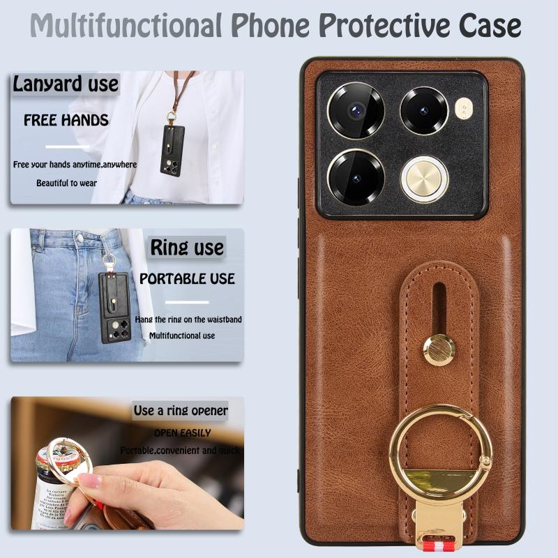 For Infinix Note 40 Pro 5G X6851 Wristband Leather Back Phone Case(Brown)