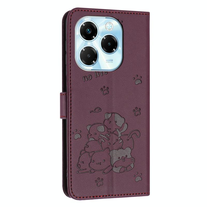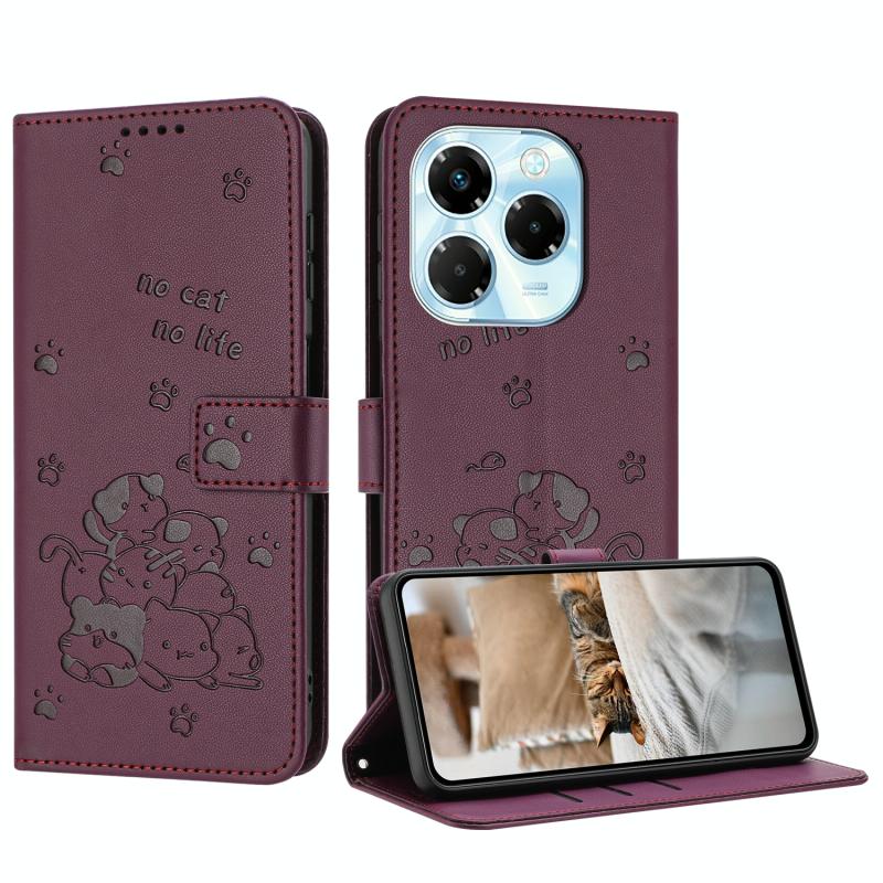 For Infinix Note 40X 5G Embossed Kitten Phone Leather Case with Lanyard(Wine Red)