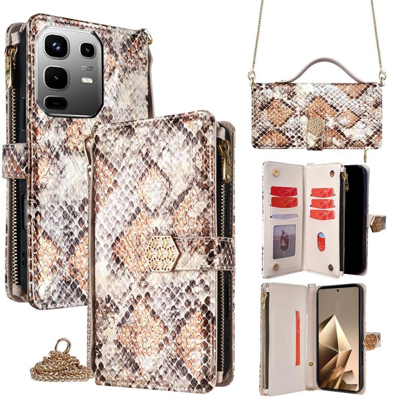 For Infinix Note 50 4G Crossbody Handle Snake Texture Leather Phone Case(White)