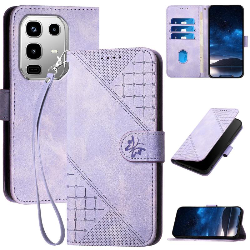 For Infinix Note 50 4G / Note 50 Pro 4G Grid Butterfly Embossed Pattern Leather Phone Case with Lanyard(Light Purple)