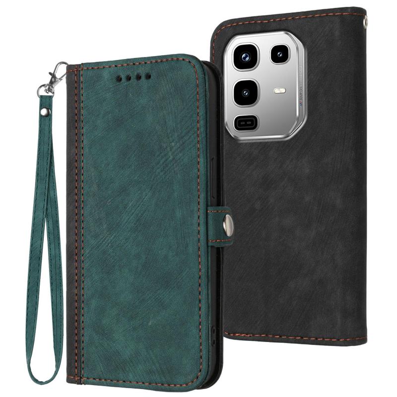 For Infinix Note 50 4G / Note 50 Pro 4G Side Buckle Double Fold Hand Strap Leather Phone Case(Dark Green)