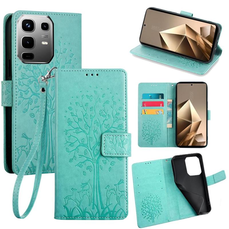 For Infinix Note 50 4G Tree & Deer Embossed Leather Phone Case(Green)