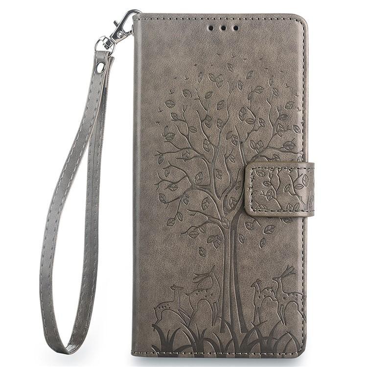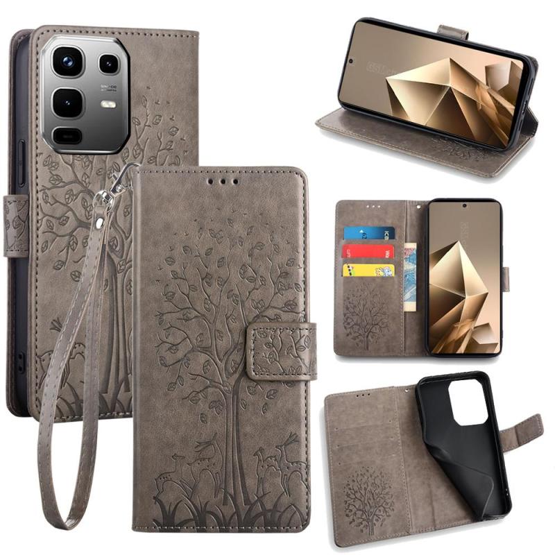 For Infinix Note 50 4G Tree & Deer Embossed Leather Phone Case(Grey)