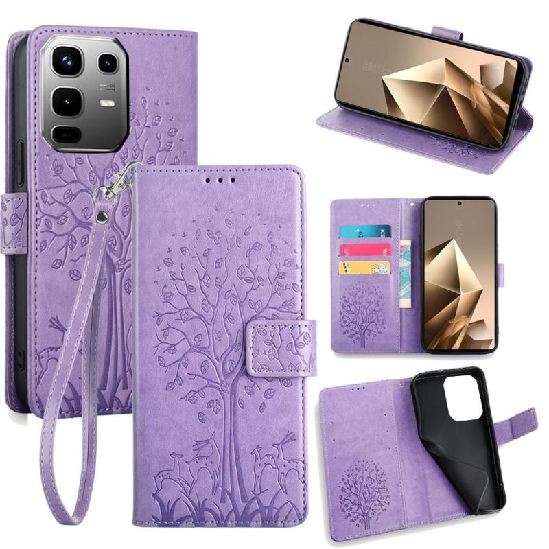 For Infinix Note 50 4G Tree & Deer Embossed Leather Phone Case(Purple)