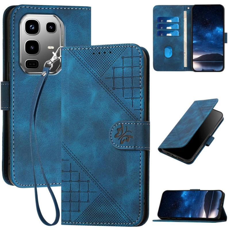 For Infinix Note 50 Pro+ Grid Butterfly Embossed Pattern Leather Phone Case with Lanyard(Dark Blue)