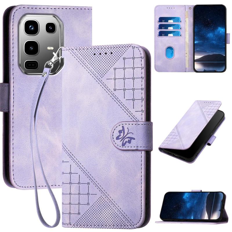 For Infinix Note 50 Pro+ Grid Butterfly Embossed Pattern Leather Phone Case with Lanyard(Light Purple)