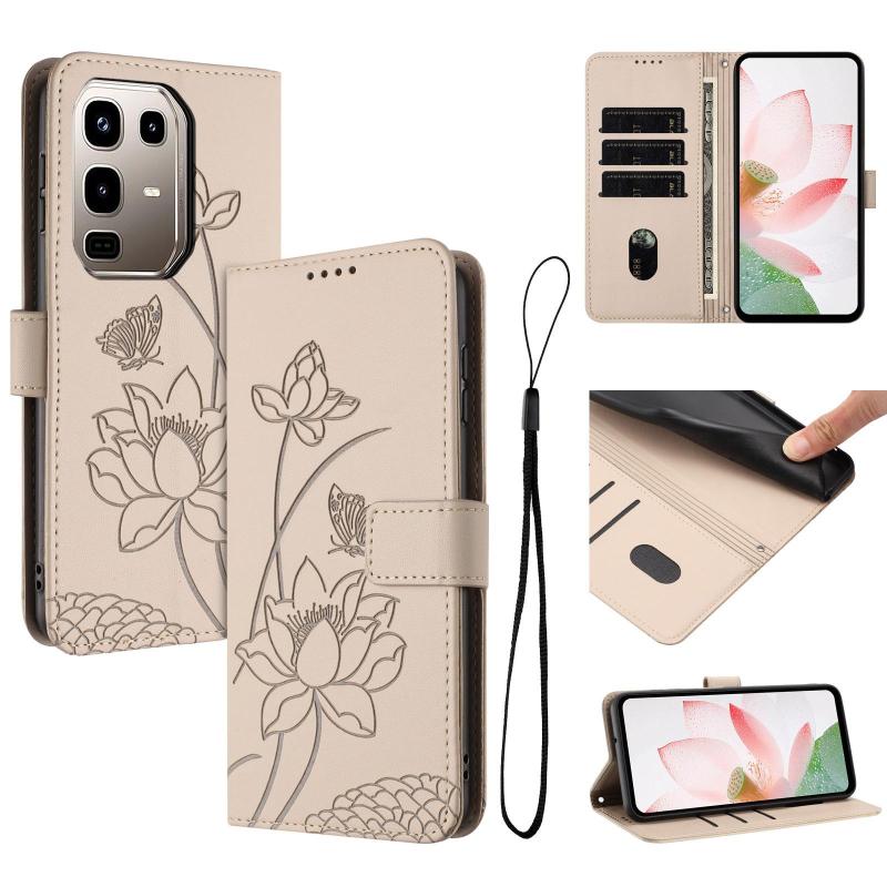 For Infinix Note 50s Lotus Embossed Leather Phone Case with Lanyard(Beige)