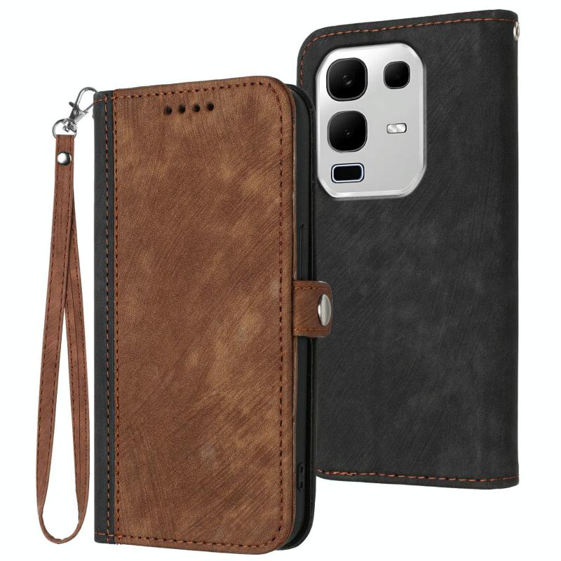 For Infinix Note 50x Side Buckle Double Fold Hand Strap Leather Phone Case(Brown)