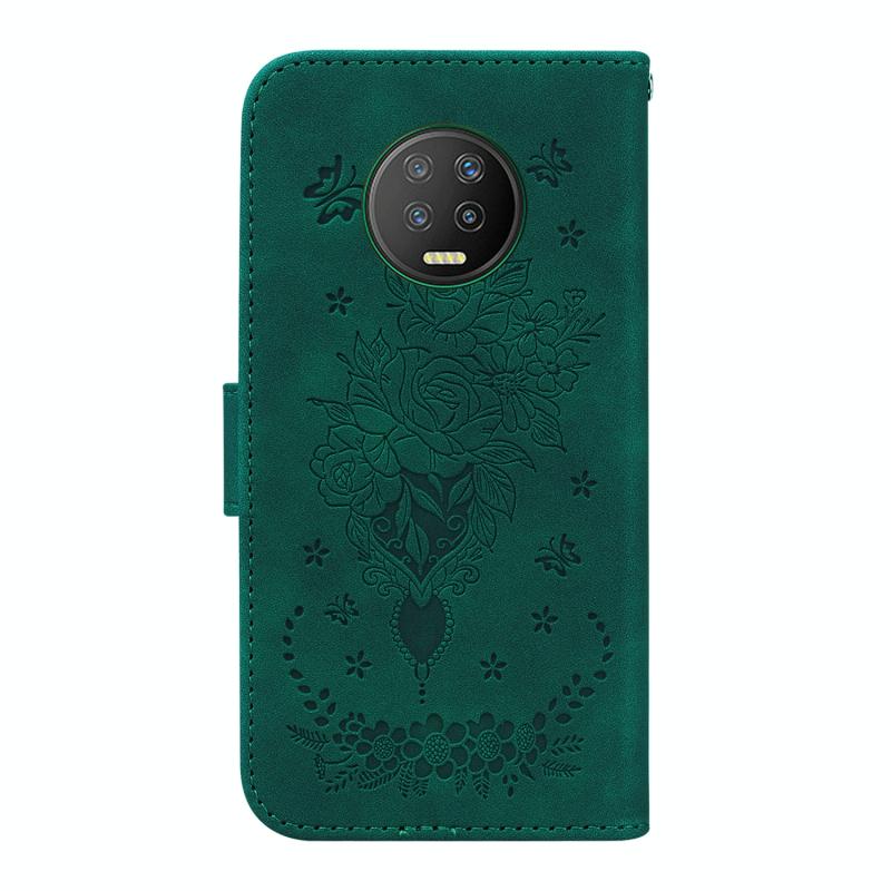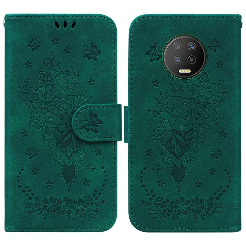 For Infinix Note 7 X690 Butterfly Rose Embossed Leather Phone Case(Green)