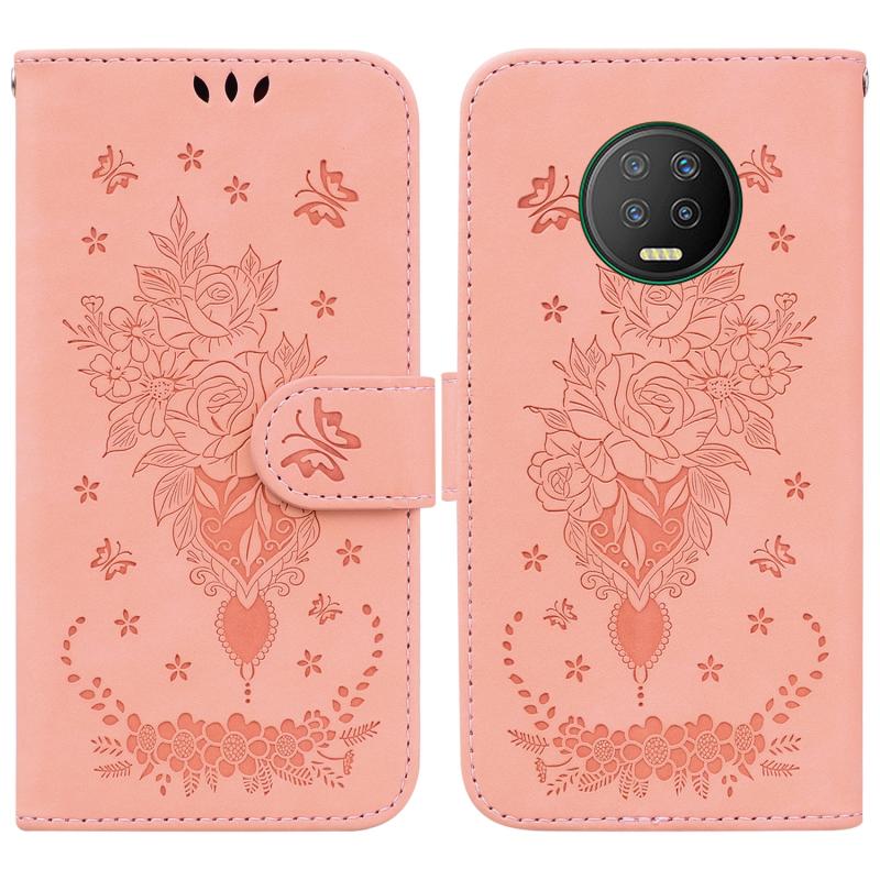 For Infinix Note 7 X690 Butterfly Rose Embossed Leather Phone Case(Pink)