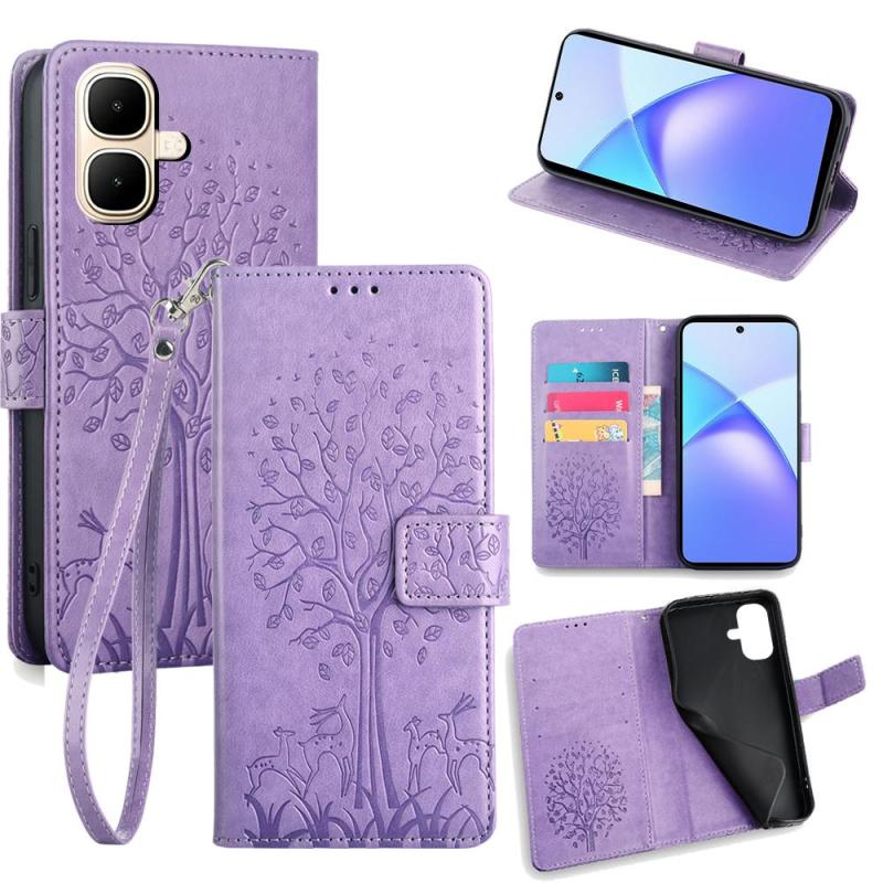 For Infinix Smart 10 4G Tree & Deer Embossed Leather Phone Case(Purple)