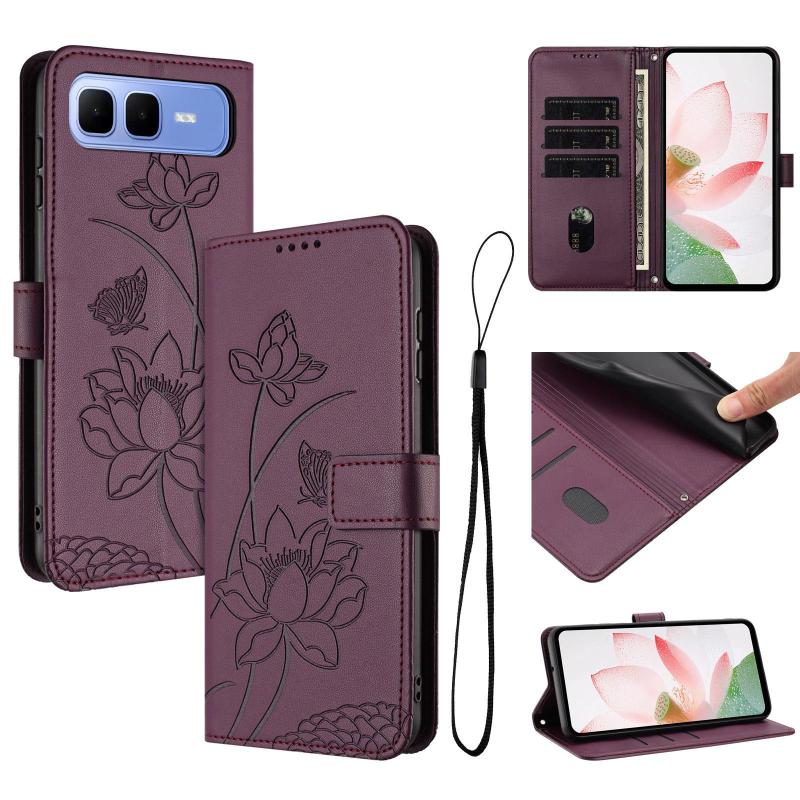 For Infinix Smart 10 Plus Lotus Embossed Leather Phone Case with Lanyard(Wine Red)