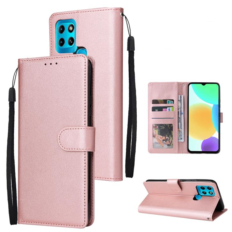 For Infinix Smart 6 3-Card Slots Multifunctional Leather Phone Case(Rose Gold)