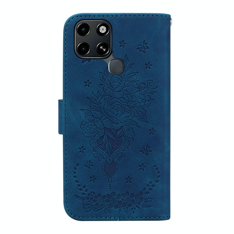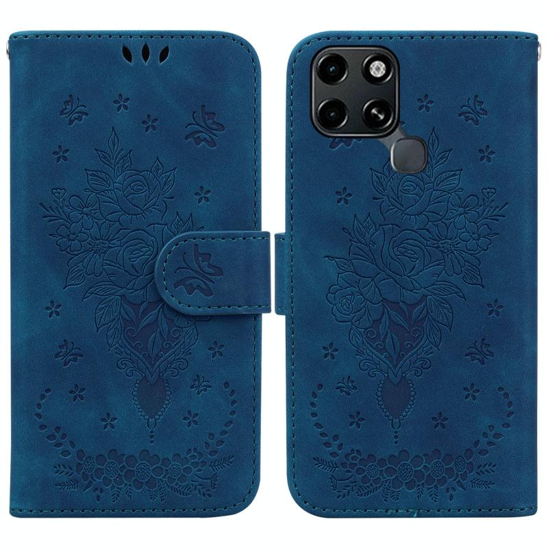 For Infinix Smart 6 Butterfly Rose Embossed Leather Phone Case(Blue)