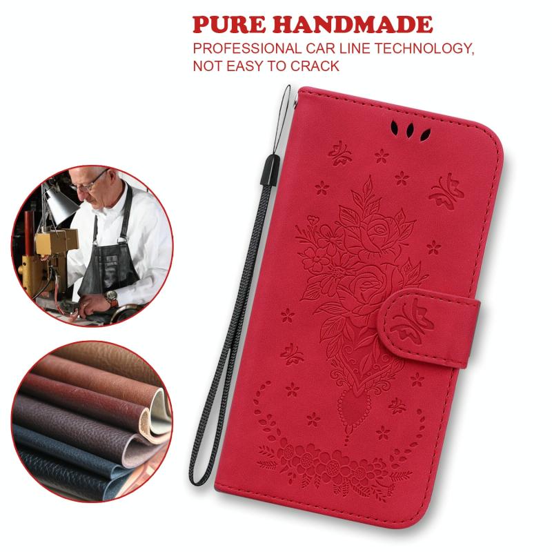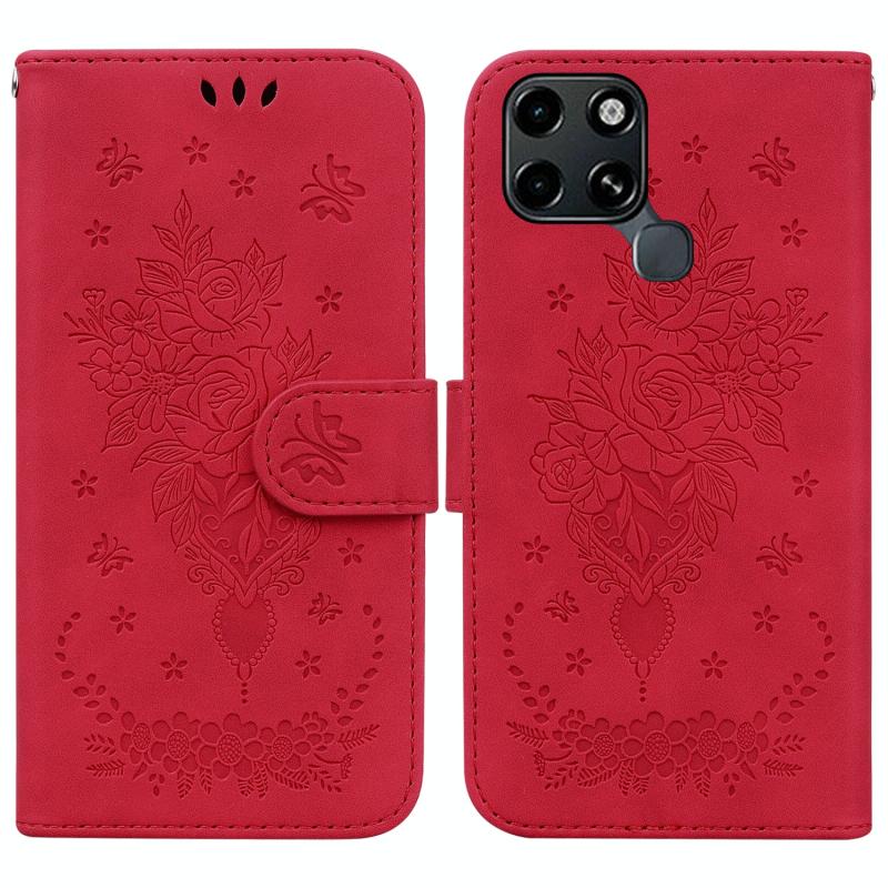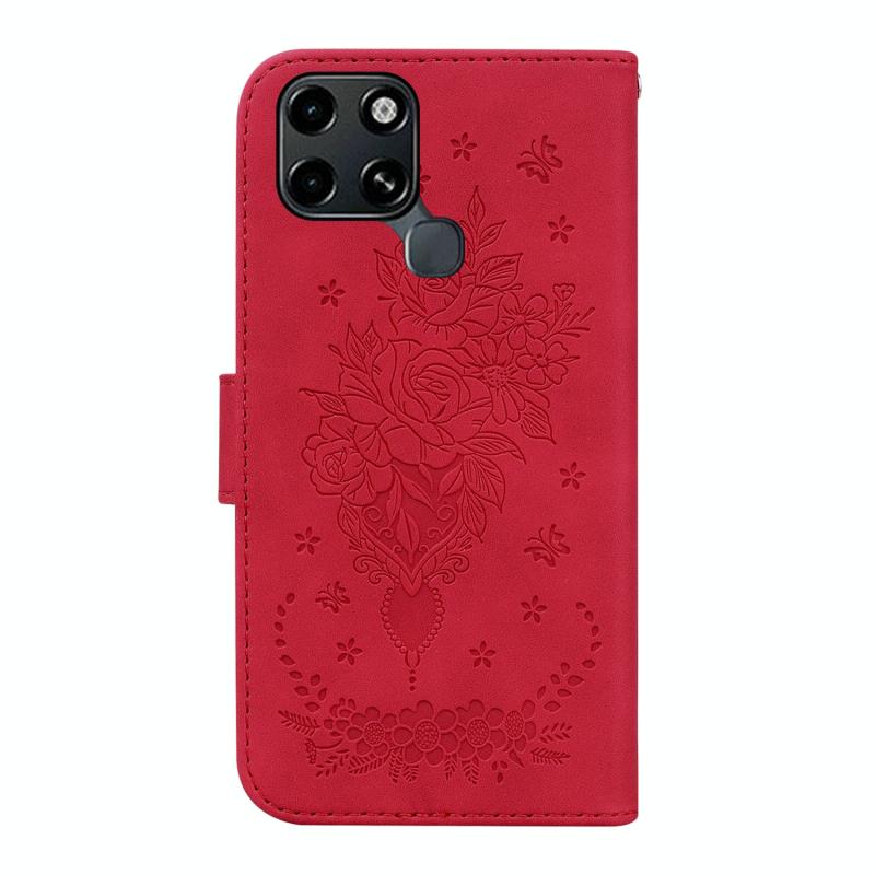 For Infinix Smart 6 Butterfly Rose Embossed Leather Phone Case(Red)