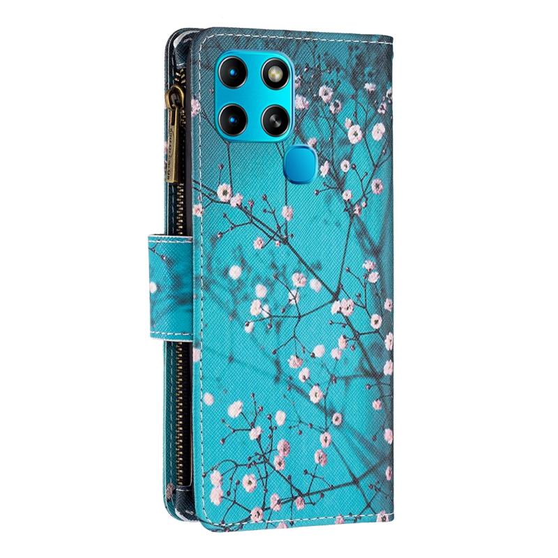 For Infinix Smart 6 Colored Drawing Pattern Zipper Leather Phone Case(Plum Blossom)