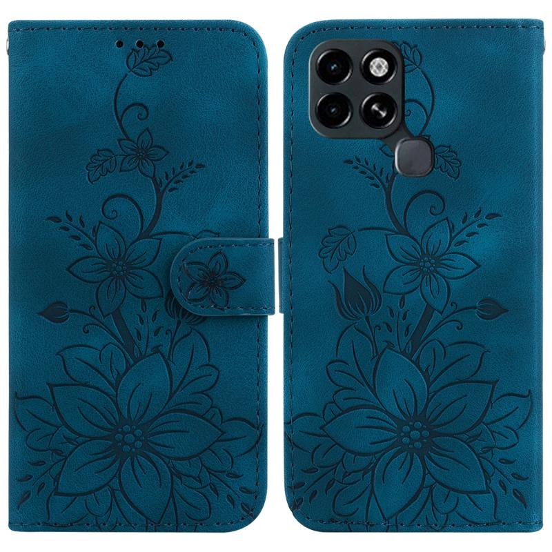 For Infinix Smart 6 Lily Embossed Leather Phone Case(Dark Blue)
